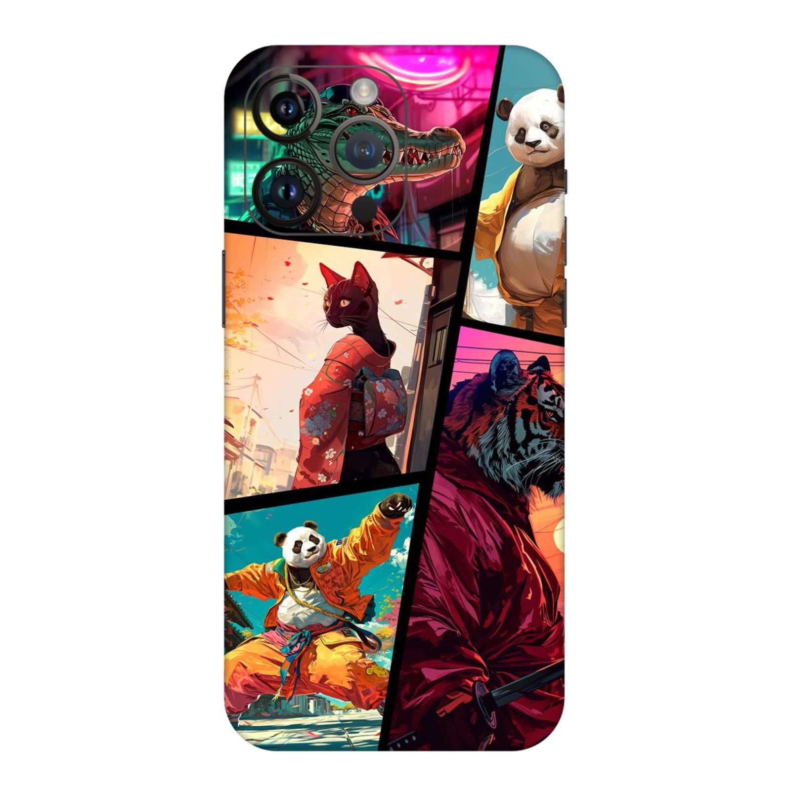 Express your unique style with this vibrant Cyberpunk Animal Collage Mobile Skin from GADGETS DECOR. Featuring a crocodile with camera eyes, a panda in a suit, a samurai cat, and a tiger warrior, this skin offers a sleek look and superior protection against scratches and dust.